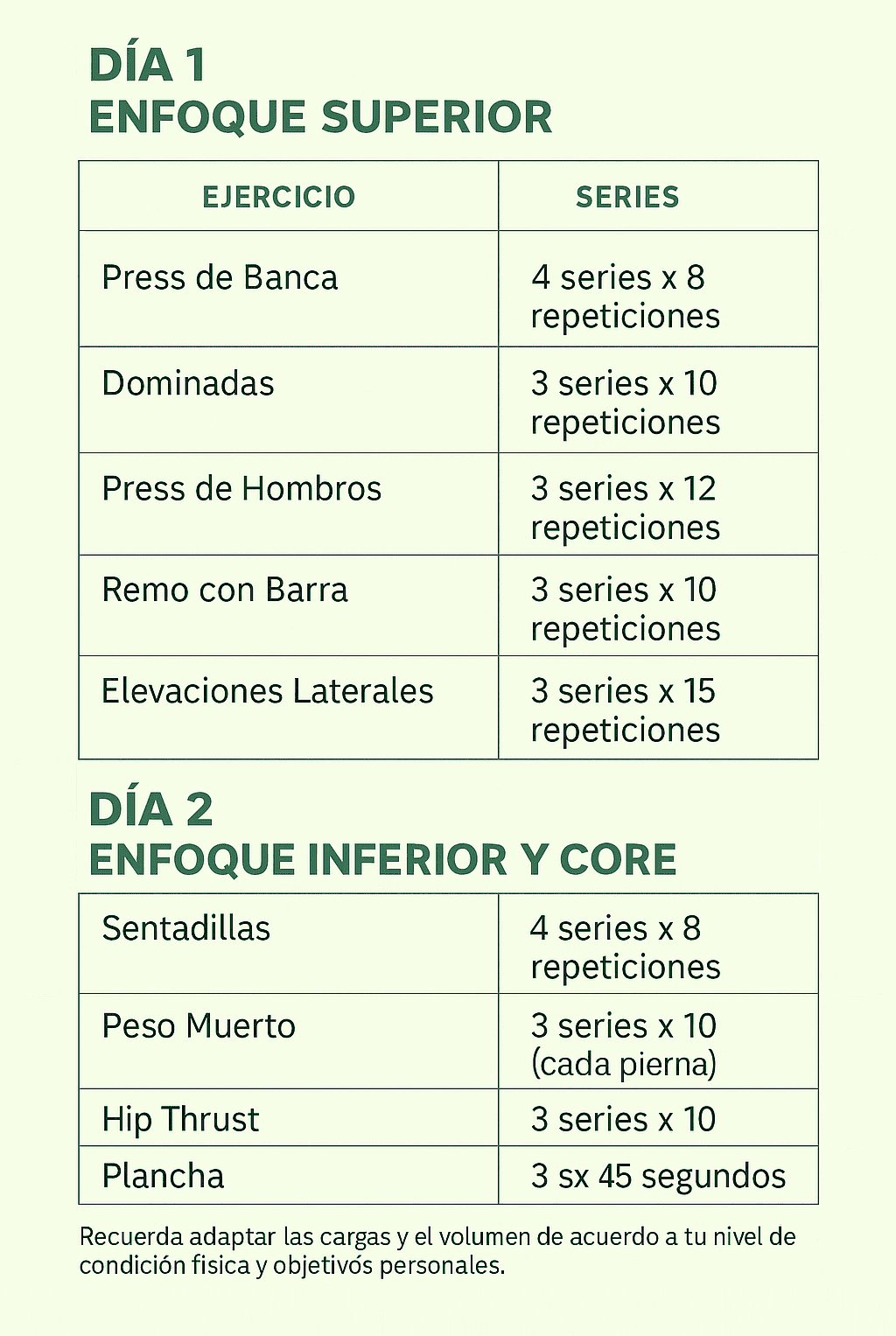 Descargar rutina fullbody 2 días